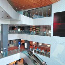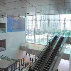 JR横浜タワーの1階の正面エントランスからの続き。 吹き抜けホールの北側はNEWoMan横浜のメイン・エントランス アトリウムの北側全てにNEWoManの入り口はあるが、1階のここが正面。総合案内の有人カウンタ/デスクがあって常時4~5人のコンシェルジュが対応に当たる。 JR横浜駅の根岸線ホームから… MusicArena 2020/12/21 22:13