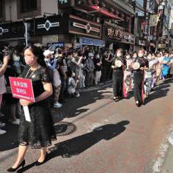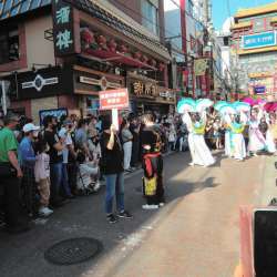 中華街、5月末のハマフェスY163の行事。その続き。 真美国際旗袍队 詳細は不案内なのだが、どうやらチャイナドレスの縫製や指導を行う専門店の一団のようだ。旗袍=チーパオ=チャイナドレスを意味するようで、队=隊だそうだ。我流で無理に意味を汲み取ると、真に美しい国際的に通用するチャイナドレスを着た隊列、… MusicArena 2022/07/06 22:52