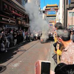 中華街、5月末のハマフェスY163の行事。もう暫く続く。 爆竹 もの凄い音圧で炸裂する爆竹で、至近距離でまともに聞くと聴覚障害を起こすかもしれない。もちろん耳を塞いで終わりを待つ。黒色火薬が破裂した時の灰色の煙が辺りを覆い尽くす。 横浜関帝廟将軍会 詳しくは知らないが、この青い衣装を着たユーモラスな… MusicArena 2022/07/11 22:18