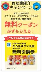 今回のお友達紹介キャンペーンで必ずもらえる無料クーポンは「からあげクン無料引換券(ローソン・持ち帰り限定)です。