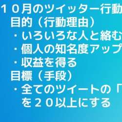 定期的に、本格ツイッターの活動報告をしています。今回は7回目。 小生にとって最初の3ヵ月は準備運動、よって残りの1ヵ月もしっかり基礎力を付けて参ります。 小生の10月のツイッターの目的と目標「目的」とは「何のためにやるの […] 人生応援ブログ 2022/10/20 04:36