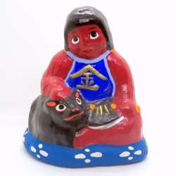 入手場所:佐藤宅宮城県仙台市青葉区堤町2-10-10TEL:022-233-6409 高さ15.5cm、幅14cmの張り子。おかっぱ頭の真っ赤な金太郎が仲良さそうに熊を従えている。顔に余裕が伺える、中央にはマサカリも見える。♪マサカリかついで金太郎 熊にまたがり お馬のけいこ はいしどうどう はいど… 郷土玩具の杜 2022/06/07 06:32