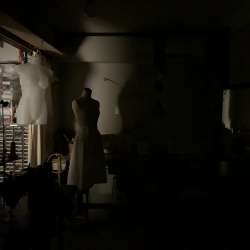 夜、ちょっと出かけて、戻って来た時に見える景色 光とシルエット 暗い中にトルソーとトルソーハンガーと 刺繍のスタンド枠、 ミシンや糸ラックや 素材のボックス、引き出しなどが浮き上がって見えて 粗が隠れてとてもアトリエっぽい。 電気は消してもパソコンはついたまま、 そんな時にこういう世界が見られます。… ガジャのねーさんの 空を… 2025/02/01 06:10
