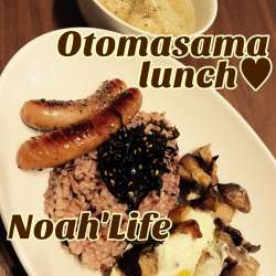 大人様ランチ(≧∇≦)✿*:✧︎*。 黒米、赤米、アマランサス、そばの実を入れた雑穀ご飯(∩˃o˂∩)♡ 肉団子のスープも大好評(*ˊᗜˋ*)♡ しいたけとマッシュルーム、無添加厚切りベーコンのソテー目玉焼きのせと無添加あらびきソーセージ 黒米や赤米などの古代米はもちもちになって美味しいからめっち… Noah'Life 2023/10/06 12:00