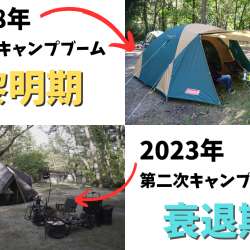 キャンプ人気は1990年代に 「第一次キャンプブーム」 が起き一時収束、その後2013~2015年頃から再び人気が出始めSNSへの「映える」写真投稿や有名キャンプアニメ、有名YouTuberの活躍、新型コロナの影響もあり2018年から現在まで 「第二次キャンプブーム」 が起きています。そのブームも… 強欲男は身をやつす 2023/09/30 19:50