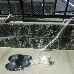 風でスリッパが飛ばされないよう、ポリ紐でベランダに繋いでいます(画像)。そのポリ紐は、人間でさえ切り取ることはできません。 ところが、つがいと思われる2羽の鳥が来て、嘴に咥え、飛び立ちます。紐は切られていないので、鳥は引き戻されます。そのようなこと... 「いのち輝き塾」…人が輝… 2023/08/02 21:05