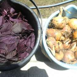 今回の収穫は、赤シソ50茎と玉ねぎ40個です。赤シソは、梅干しを漬ける際に樽に入れるためのものです。梅は4.5Kgを準備しました。 梅干し作りのレシピは、平成20年7月8日、私の母から妻が教わったもので、毎回その時のメモ(画像)を見ながら作っています。メモに... 「いのち輝き塾」…人が輝… 2025/06/21 22:45