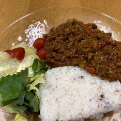 キーマカレー トマト缶のストックがおしまい、はいいけれど 最後の一個は賞味期限が近い。 と言う事で、まずは、玉葱やニンニク、人参おろしで炒めて整えて冷凍しておいた。 で キーマカレー作りましょう、と後日。 オリーブも使い切りたくてプラス。 ★今日の雑貨屋(店舗)**おやすみです★ 【ただいまのBGM… ガジャのねーさんの 空を… 2025/06/23 06:16