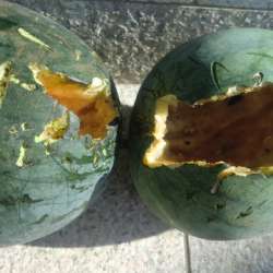 画像はスイカが何者かに被害を受けた状況です。大小10個以上被害を受けました。残っているスイカには、ゴムシートを被せたり、ビール瓶のケースを被せました。その他、ウリ、メロン、キュウリ、トウモロコシ、ナスも被害を受けています。トウモロコシは、ほぼ全滅で、食べら... 「いのち輝き塾」…人が輝… 2020/08/26 22:24