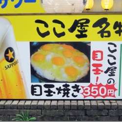 新潟駅から昼飲み出来る店を探しながら歩いていると… 黄身が7個もある目玉焼きのサンプル写真を発見、しかも安い♪ (こりゃ~、ネタになるぞ!)と思って階段を降りた… ■飲むなら ここ屋 本店 広めの店内、入店したけどスタッフが居ない? 1人でポツンと飲んでいた客が 「お客さんだよ~!」と厨房に向かって… 笑い豚2 2021/10/22 19:59