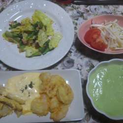「尽くしはやめれ~!(●`ε´●)」っと、いつも旦那さまに怒られても、ささやかな反抗心でわざと尽くし料理を作ってる今日このごろ(笑)さすがにこの尽くし料理はバレませんでしたww今回のお題は。。。マヨネーズ\(^o^)/すべての料理にマヨネーズを使ってみましたww海老と山独活のフリッター チリタルタル… SDGO ばんしいのブロ… 2022/03/03 02:43
