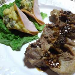 スペアリブを塩麹とうみま酒で圧力鍋にかけ、30分煮込みましたw肉が骨からポロっと取れるくらい柔らかくなったスペアリブ(^^)w付け合せは、マッシュしたじゃがいもに枝豆を混ぜて、ハムで巻き巻きwちょっと思いつきで、バルサミコと粒マスタードを合わせてソースにしてみました(^^)/バルサミコ酢、醤油、砂糖… SDGO ばんしいのブロ… 2021/10/15 02:44