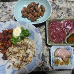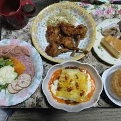 今年のクリスマス料理は、こんな。。。(笑)チューリップから揚げ最近、から揚げは片栗粉をつけて揚げてたんだけど、今日は小麦粉であげました( *´艸`)こっちの方がから揚げっぽいね(笑)オードブル ハムやらチーズやら。。。スーパーで売ってるテリーヌってなんかかまぼこみたいで、食感がどうもねぇ(^^;手作… SDGO ばんしいのブロ… 2024/12/28 02:14
