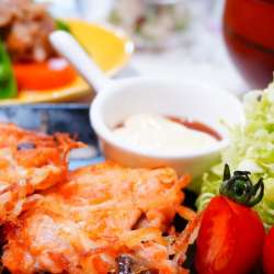ランキングに参加してます。クリックしていただけると嬉しいです(*^_^*) たたいた塩鮭と細切りポテトを混ぜて、揚げ焼きにしました。 鮭のうまみ、ポテトのカリカリ&サクサクが、たまらなくおいしい♪ 豚肉と根菜の甘辛煮、えのきの梅オイルあえを添えていただきました。 ごちそうさまでした。 3月13日の… うちごはんはマーシャもい… 2024/03/13 23:59