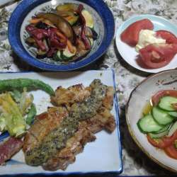 ランキングに参加してます。応援お願いします♪ 久しぶりに鶏もも肉のゆかり焼き 。 すぐに作れるうれしいレシピ。 しその香りと風味に、ホッと和んで白いごはんがおいしい。 油で焼いたナスはカツオに見立てて、たたき風に。 玉ねぎとミョウガ、ねぎでさっぱりといただきます。 厚揚げときのこのおみそ汁を添えて… うちごはんはマーシャもい… 2022/07/19 23:48