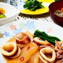 ランキングに参加してます。応援お願いします♪ 大根もみずみずしさを増し、おいしい季節。 新鮮なやりいかと甘辛く煮ました。 大根は大きく乱切りにして素材の味を楽しんで。 プリッとしたいかがよく合います。 ほうれんそうの粉チーズじょうゆあえ、かぼちゃとツナのサラダを添えた献立、 ごちそうさまでした。 … うちごはんはマーシャもい… 2022/11/29 23:48