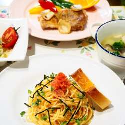 ランキングに参加してます。応援お願いします♪ 週末はお手軽パスタと鶏肉のガーリックソテーで晩ご飯。 明太子パスタはスパゲティをゆで、明太子、オリーブオイル、白だし、スパゲティのゆで汁とあえるだけ。 鶏肉のガーリックソテーは、ちょっと丁寧にじっくり焼いて、皮はカリッと、中はジューシー! シンプルだけ… うちごはんはマーシャもい… 2022/05/20 23:59