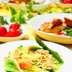 ランキングに参加してます。応援お願いします♪ なにかと気忙しいお休みは、チャチャッとお手軽パスタ。 春キャベツの甘みと塩ざけの味わいが絶妙なパスタ^^ 甘辛い味付けがお酒のおつまみにもピッタリな、鶏手羽中の照り焼きを添えて。 道の駅で買った米粉の玄米パンといっしょに、おいしくいただきました。 今日… うちごはんはマーシャもい… 2022/04/30 00:07