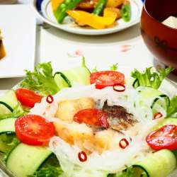 ランキングに参加してます。応援お願いします♪ 心も和む、和おかず。 体にもうれしい、たっぷり野菜と魚介で作りました。 いか大根も大根を薄く切ってグッと時短に。 刺身用さくのまぐろは火いらずメニューのサラダに。 生野菜、たっぷりわかめとあえて、たまらないおいしさに。 旬の豆ごはんといっしょにおいしく… うちごはんはマーシャもい… 2022/05/16 00:09