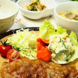 ランキングに参加してます。応援お願いします♪ 公園に咲く薄紫色したハナニラ、星形の花がかわいい。 週のスタートはお肉献立。 みんな大好きハンバーグ。 新玉ねぎをよく炒めて、パン粉は牛乳でしめらせ、よくこねて。 今日もレンジにおまかせハンバーグ。 ちょっと焼き足りないかな、って1分30秒プラス。 ケ… うちごはんはマーシャもい… 2021/03/15 23:37
