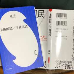 今週のベストセラー総合9位(2019.8.14集計)に入っていて、読んでみたのが「上級国民/下級国民」(橘玲=たちばな・あきら=、小学館新書)です。事前知識で興味をひかれたのですが、ちょっと参ったのが刺激的な言葉を連ねたカバー。「何だよこれ..」と、本を買って外したら、下にもう一枚普通のカバーが。… ことばを食する 2019/08/17 20:57
