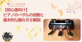 ピアノのペダルが全く初めての方や、ペダルの基本的なふみかたで困っていることがある方へ向けて、ペダルの役割やふみかたについて解説した記事です。