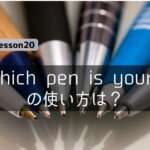 「Which pen is yours?」の意味 「which」は「どの」「どちらの」という意味の疑問詞です。 「which」の後ろには、「pen」などの名詞が続き、「which pen」で、「どのペン」という意味になり […] かんたん!英語塾 2022/09/08 12:35