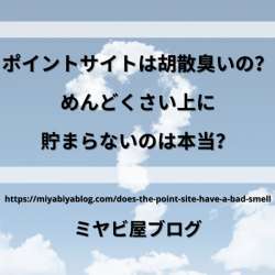 ポイントサイトはそもそもめんどくさい?できる案件は少ない? ポイントサイトは面倒なの? ポイントサイトってめんどくさい!という声を見たり、聞いたりしたことがあると思います。 ポイントサイトには、確かに ... Copyright © 2021 ミヤビ屋ブログ All Rights Reserved.… ミヤビ屋ブログ 2021/07/07 19:00