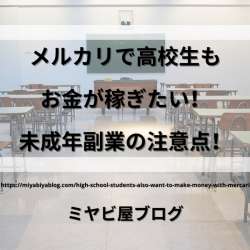 メルカリ副業で高校生も稼げるが注意が必要! 高校生がメルカリでお金を稼ぐには条件があります。 未成年者がメルカリで出品するには、保護者の方の同意が必要です。 メルカリで副業を始めたい高校生は、まず親の ... Copyright © 2021 ミヤビ屋ブログ All Rights Reserved.… ミヤビ屋ブログ 2021/06/26 19:00