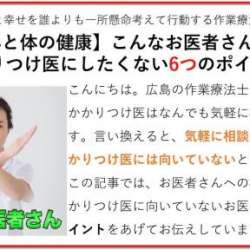 こんにちは。広島の作業療法士の川本健太郎です。 いつもブログをご覧いただき、ありがとうございます。 前回のブログでは、こんなお医者さんはかかりつけ医にしたくない6つのポイントについてお伝えしました。 […] 作業療法士20年、義足で… 2020/12/09 06:00
