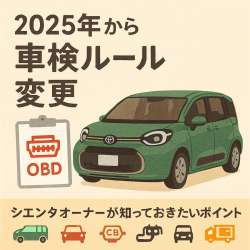 2025年4月から車検制度が大きく変わったことをご存じですか?シエンタのように最新の電子制御システムを搭載した車には、新たに「OBD検査」が義務化されるなど、従来と違う対応が必要になってきています。 本記事では、変更点の […] しえんた生活はじめてみま… 2025/08/01 09:00