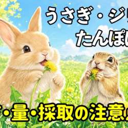 散歩中や公園でよく見かけるたんぽぽ。「うさぎやジリスにあげてもいいの?」と気になったことはありませんか? 実はたんぽぽはうさぎにもリチャードソンジリスにも与えられる植物です。ただし与える量・部位・採取場所には注意が必要で […] 投稿 うさぎとジリスはたんぽぽが好き?与え方・量・採取の注意点を解説… こはおじさんの色々日記 2026/04/18 09:00