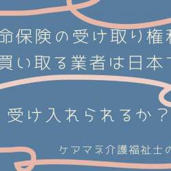 生命保険の受け取り権利を買い取る業者は日本で受け入れられるか? 生命保険の受け取り権利を買い取る業者は日本で受け入れられるか? 「生命保険の買取」誕生当初は英米でも逆風が ガンやエイズの人向けにアメリカで流行り始めている? 死亡保険を担保に最後の時間を有意義に… 買取手数料がいくらかによっては【公… ケアマネ介護福祉士のブロ… 2022/11/29 08:30