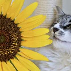 セカンドハウスの庭をおさんぽしたいですが、暑いし、蚊は多いし、夕立後は少し涼しくなっても地面がベタベタ・・・で、なかなかおさんぽできません。庭でひまわりが咲いていたので、ひとつもらって、室内で夏のお外気分を味わいます♪eva、猫生初のひまわりです。『ひまわり... 猫とふたり暮らし~eva… 2019/08/15 21:00