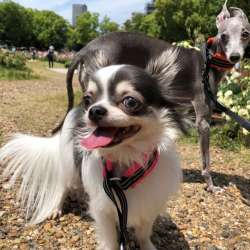 こんにちは!ロングコートチワワのルナです♪先住犬イタグレのボナさんと一緒に大阪で仲良く暮らしています。2019年5月16日の靭公園バラ園の様子。色とりどりのバラが綺麗に咲いています。平日でも多くの人で賑わい、皆さん写真を撮っています♪ルナもバラと一緒にパシャリ(*´ω`*)❤顔と同じくらい大きなバラ… チワワのルナの成長記 2019/05/17 09:55
