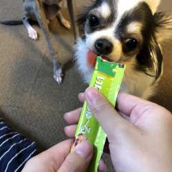 こんにちは!食いしん坊チワワのルナです♪イタリアングレーハウンドのボナさんと一緒に大阪で仲良く暮らしています。そんないつも元気で食欲満点なルナに・・・「オヤツですよ~」今日のオヤツは『わんちゅ~る』夢中でペロペロ!美味しいね(*´ω`*)後ろで待ってるボナさんと交代ね!順番にペロペロして・・・ん??… チワワのルナの成長記 2019/04/22 10:09