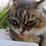 「ベ〜だ」 いつものようにベランダで猫草の広大。 先が黄色くなっても、まだオッケーです。 「いや、むしろこのくらいがウマウマ」 ホントかな? 「渋くて美味いぞ、ガハハ〜」 大人の男だね〜。 「 私は私のラーメン食べる〜 責任もって食べる〜 」 食後のおすまし… 幽霊屋敷の猫髭一家 2016/08/25 12:00