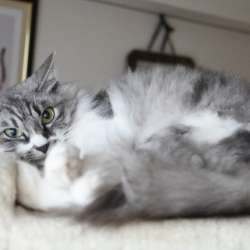 タワーにいるevaに話しかけてみる。いったーん。チラッ若干イカ耳ですけど、どうしました?eva「嫌な予感がしゅる・・・」嫌な予感てなによ~なでなで♡よしよし♡いいこちゃんです♡嫌なことじゃなかったでしょ?なでなでが終了すると、このように頭頂部をタワーベッドのフ... 猫とふたり暮らし~eva… 2023/05/21 21:00