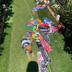 今日はこどもの日!端午の節句。今年は頑張って写真撮ろうって決めてました。こう、観光地にありそうなかんじにしようって。100均で鯉のぼり買い込んで、バラして繋いで〜見向きもしないワンコども。完成するとこうなるわけです。四つん這い、匍匐前進でないと通れないんだよ... まめりく日記 2023/05/05 22:14