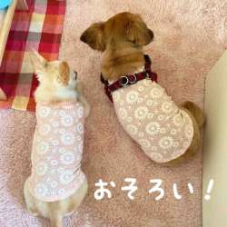 おそろいの服!数少ないおそろいです前は陸、この服ぶかぶかだったなあジャストサイズになったまあ、脱いじゃうんだけどご飯食べてお散歩行ってからの歯磨きオモチャかじかじ陸はマメが遊んでると横取りします。この後も追いかけてた。庭に出してたら仲良く並んでゴロン... まめりく日記 2022/04/17 19:29
