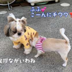 ご近所のワンちゃんがお庭で遊んでいたのでお邪魔しまーす❣️シーズーちゃんと長めのご挨拶。陸はこのシーズーちゃん、大好きです。マメはご近所のおばちゃんが大好き?ずっとついて歩いてました笑 もぐもぐタイム。写真撮るにはおやつしかない? 大体マメががっついてま... まめりく日記 2022/03/21 21:23