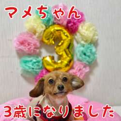 本日、マメちゃん3歳になりました?おめでたーい❣️楽しい一年にしようね❤️ 撮影飽きた?大丈夫、今陸連れてくるからね!来ちゃった…って感じの写真がとれたw 陸、お花剥がそうとしてます。陸は誕生日じゃないじゃん!まるで自分の誕生日みたいな顔して!あと誕プレね... まめりく日記 2022/03/23 21:02