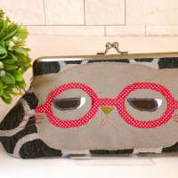 赤い眼鏡をかけた大きなお顔の猫さんデザインです!