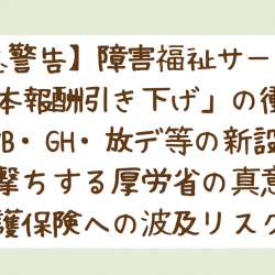 【緊急警告】障害福祉サービス「基本報酬引き下げ」の衝撃|就労B・GH・放デ等の新設を狙い撃ちする厚労省の真意と、介護保険への波及リスク 【緊急警告】障害福祉サービス「基本報酬引き下げ」の衝撃|就労B・GH・放デ等の新設を狙い撃ちする厚労省の真意と、介護保険への波及リスク 1. 異例中の異例|なぜ国… ケアマネ介護福祉士のブロ… 2026/02/12 06:30