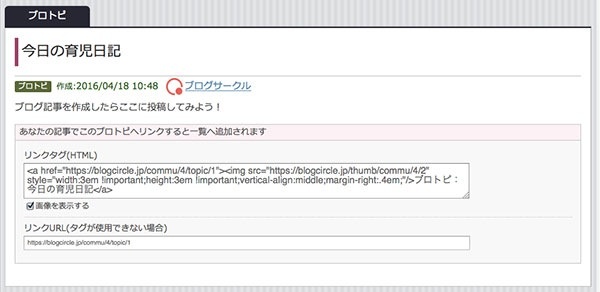 ブロトピに参加する場合は、ブロトピ画面の上部に表示されている「リンクタグ」をブログ記事に貼りつけることで、自動的に貼り付けた対象のブロトピに反映されます。