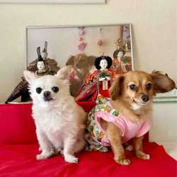 チワックスのマメ、チワワの陸、(先代犬MDの太郎・次郎)と暮らしています。