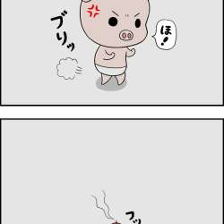 “高島のら”とヘコキブタ(嫁)の4コマ漫画です。