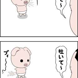 “高島のら”とヘコキブタ(嫁)の4コマ漫画です。