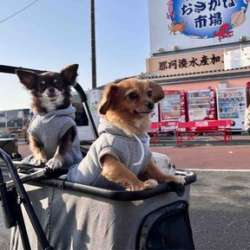 チワックスのマメ、チワワの陸、(先代犬MDの太郎・次郎)と暮らしています。