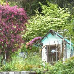 かなり広い庭に悪戦苦闘。こつこつと作業。DIYが大好きで愚作があちらこちらに設置。愛猫の「とらじろう」登場。保護猫の「にこ」も。